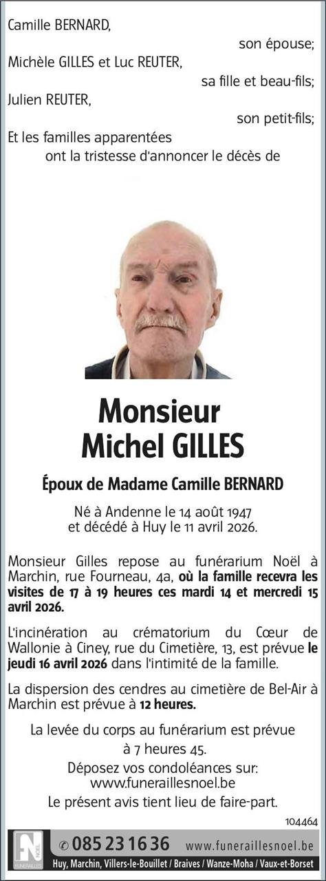 Décédé à Huy (4500) le samedi 11 avril 2026 à l'âge de 78 ans