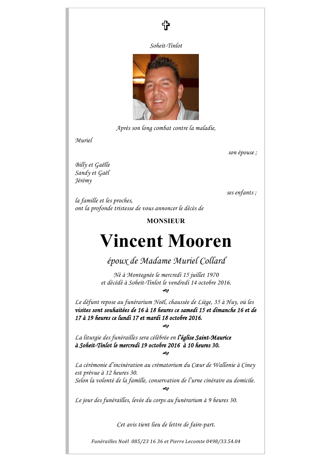 Décédé à Soheit-Tinlot (4557) le samedi 15 octobre 2016 à l'âge de 46 ans