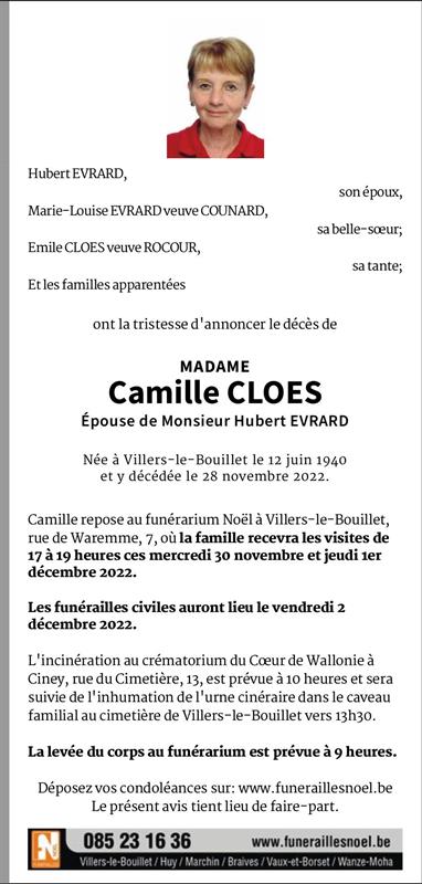 Décédée à Villers-le-Bouillet (4530) le lundi 28 novembre 2022 à l'âge de 82 ans