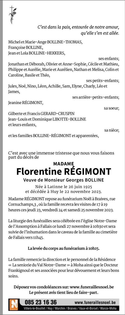 Décédée à Huy (4500) le mercredi 22 novembre 2023 à l'âge de 98 ans