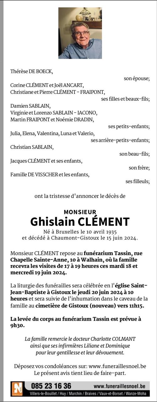 Décédé à Chaumont-Gistoux (1325) le samedi 15 juin 2024 à l'âge de 89 ans