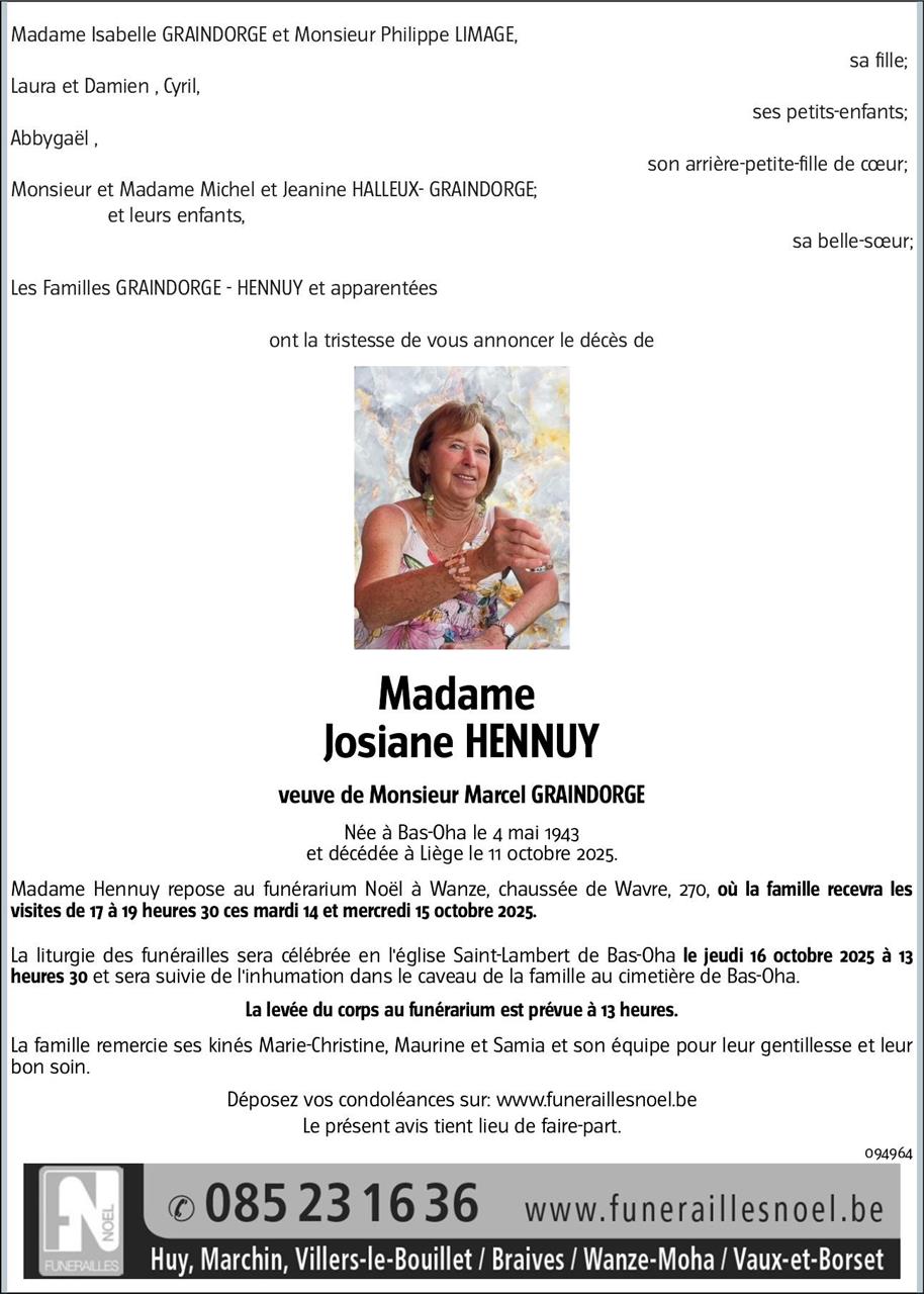 Décédée à Liège (4000) le samedi 11 octobre 2025 à l'âge de 82 ans