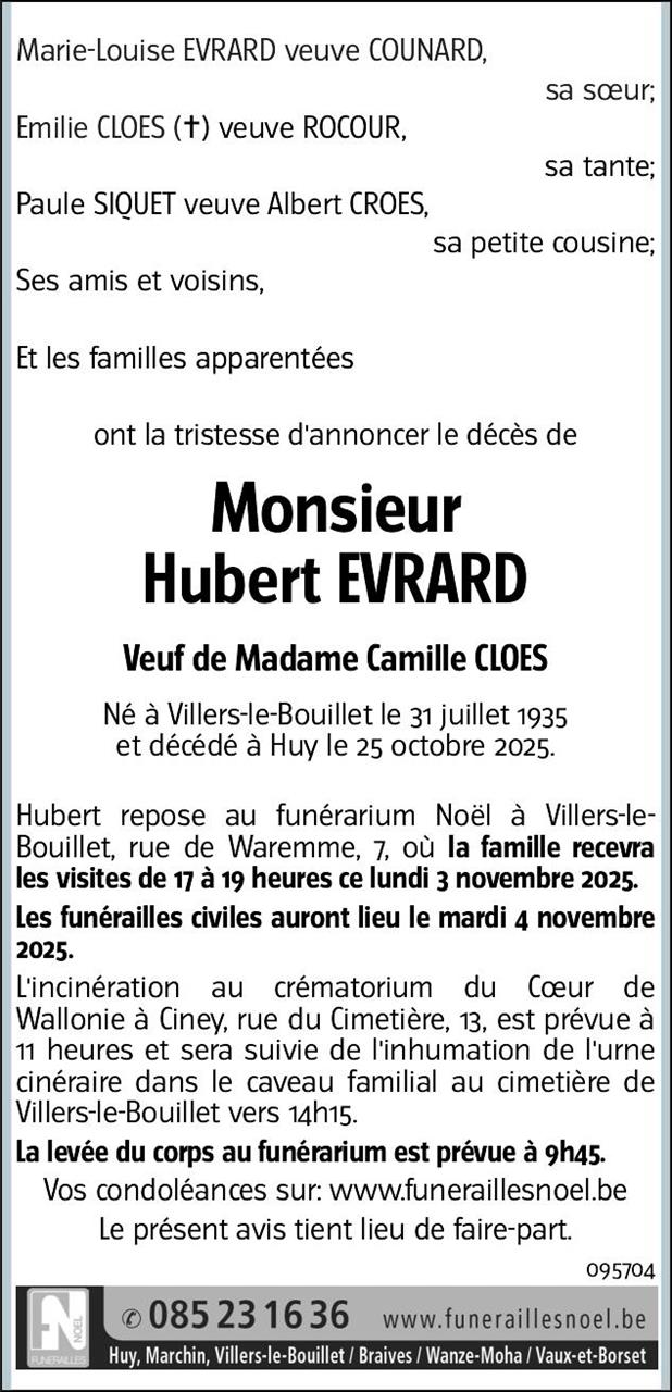 Décédé à Huy (4500) le samedi 25 octobre 2025 à l'âge de 90 ans