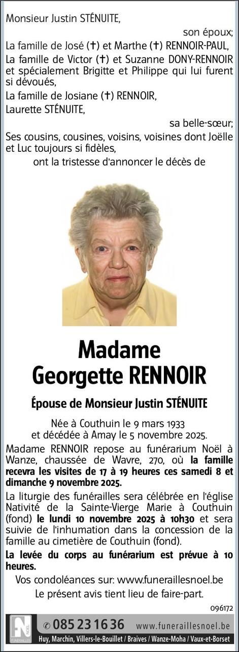 Décédée à Amay (4540) le mercredi 5 novembre 2025 à l'âge de 92 ans
