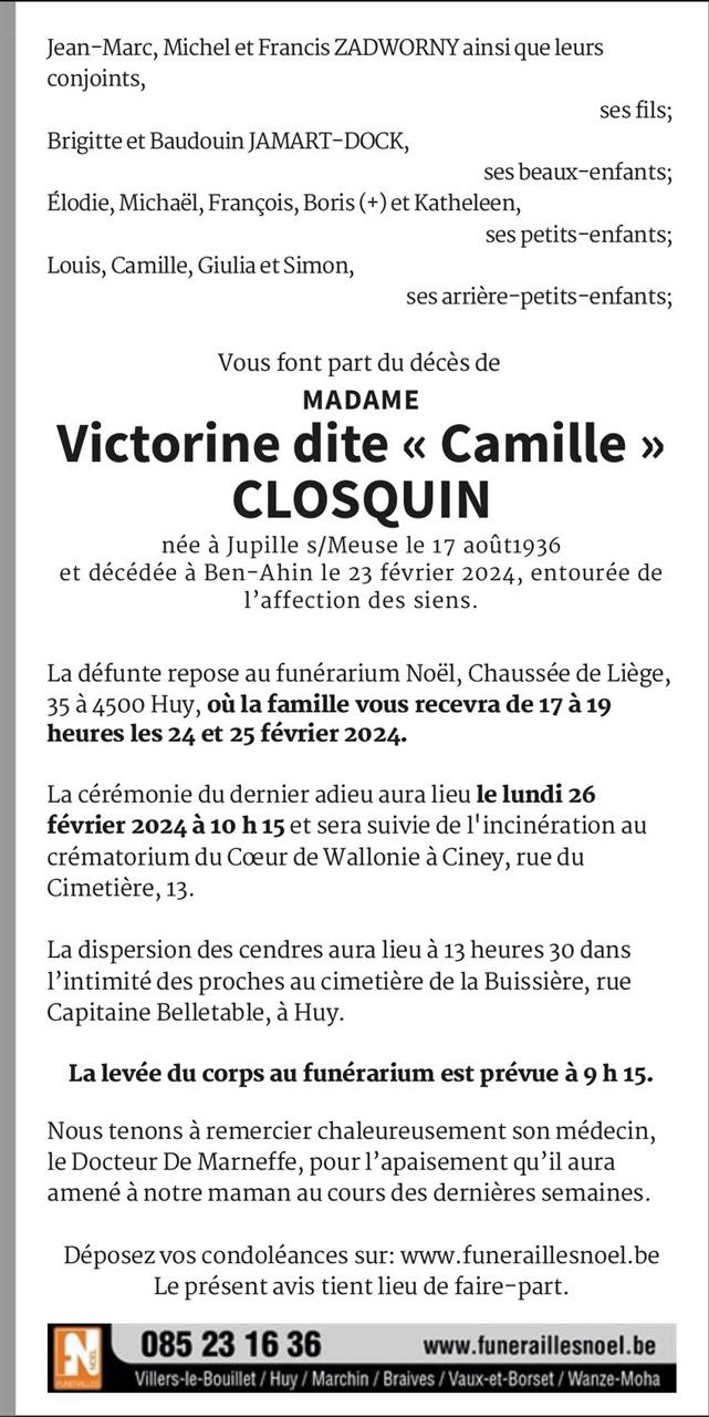 Madame Victorine dite Camille CLOSQUIN