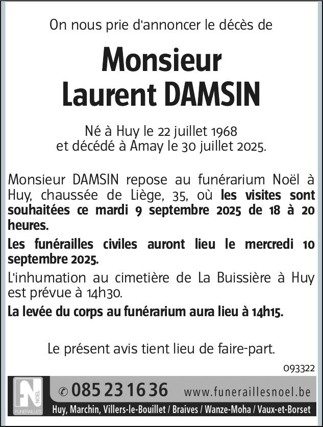 Décédé à Amay (4540) le mercredi 30 juillet 2025 à l'âge de 57 ans