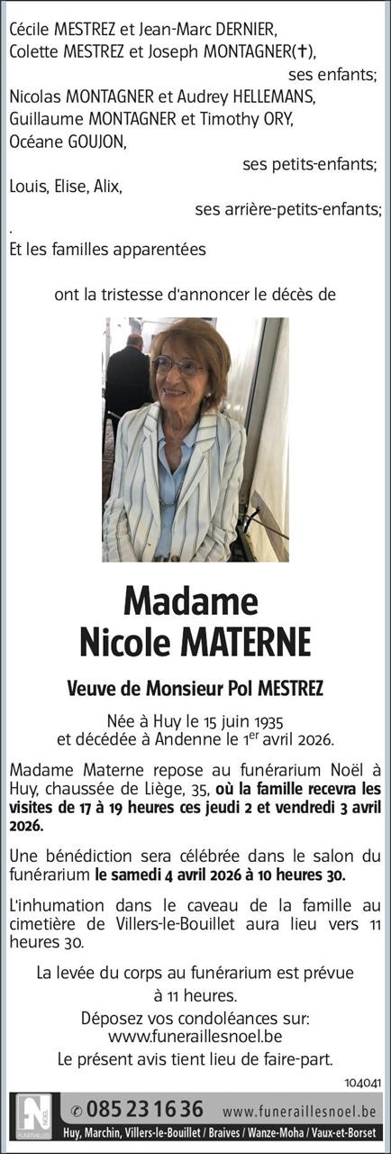 Décédée à Andenne (5300) le mercredi 1 avril 2026 à l'âge de 90 ans