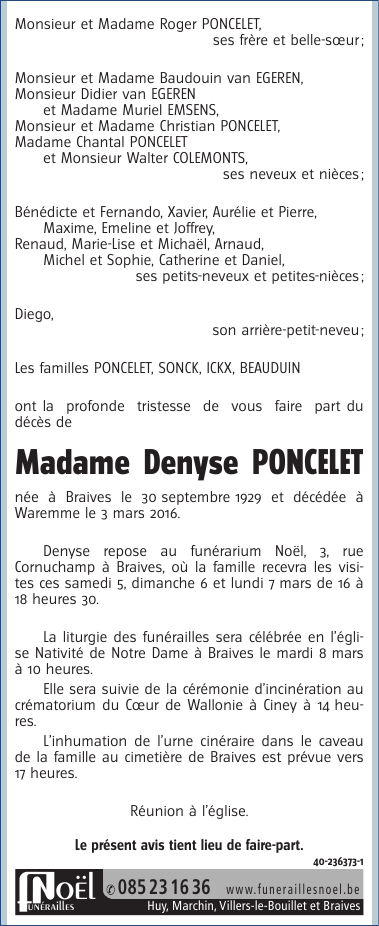 Madame Denyse PONCELET