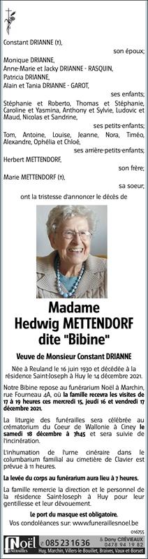 Décédée à Huy (4500) le mardi 14 décembre 2021 à l'âge de 91 ans