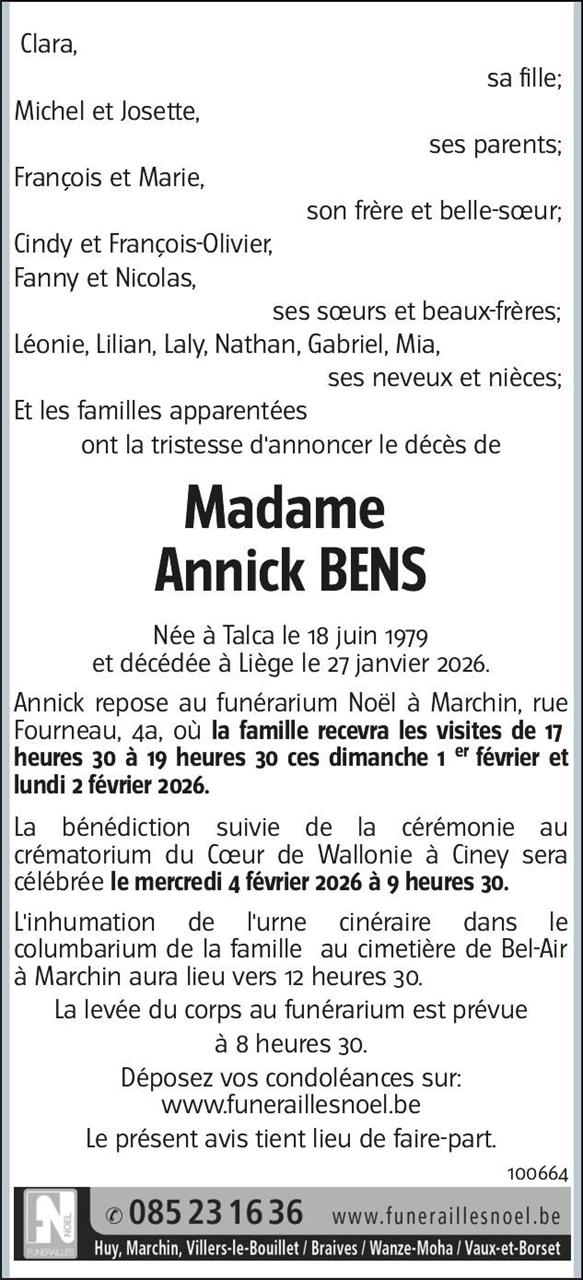 Décédée à Liège (4000) le mardi 27 janvier 2026 à l'âge de 46 ans