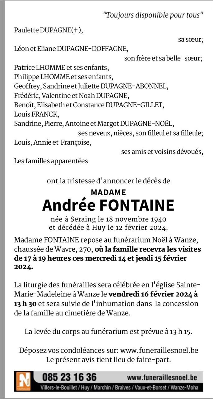 Décédée à Huy (4500) le lundi 12 février 2024 à l'âge de 83 ans
