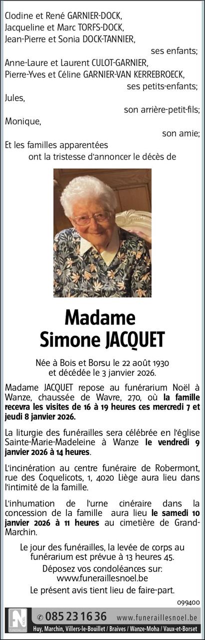 Décédée à Huy (4500) le samedi 3 janvier 2026 à l'âge de 95 ans