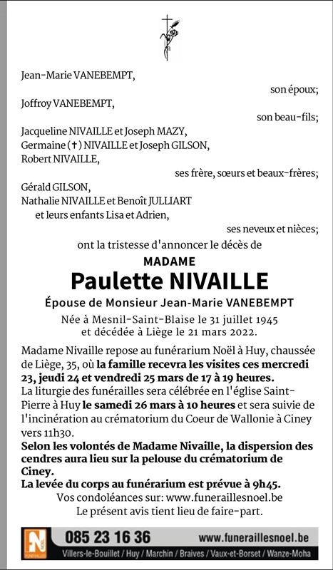 Madame Paulette NIVAILLE