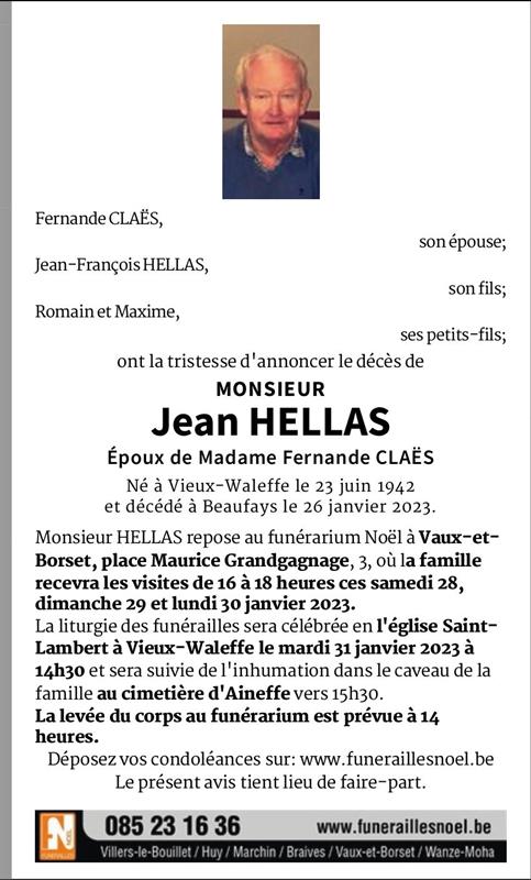 Décédé à Beaufays (4052) le jeudi 26 janvier 2023 à l'âge de 80 ans