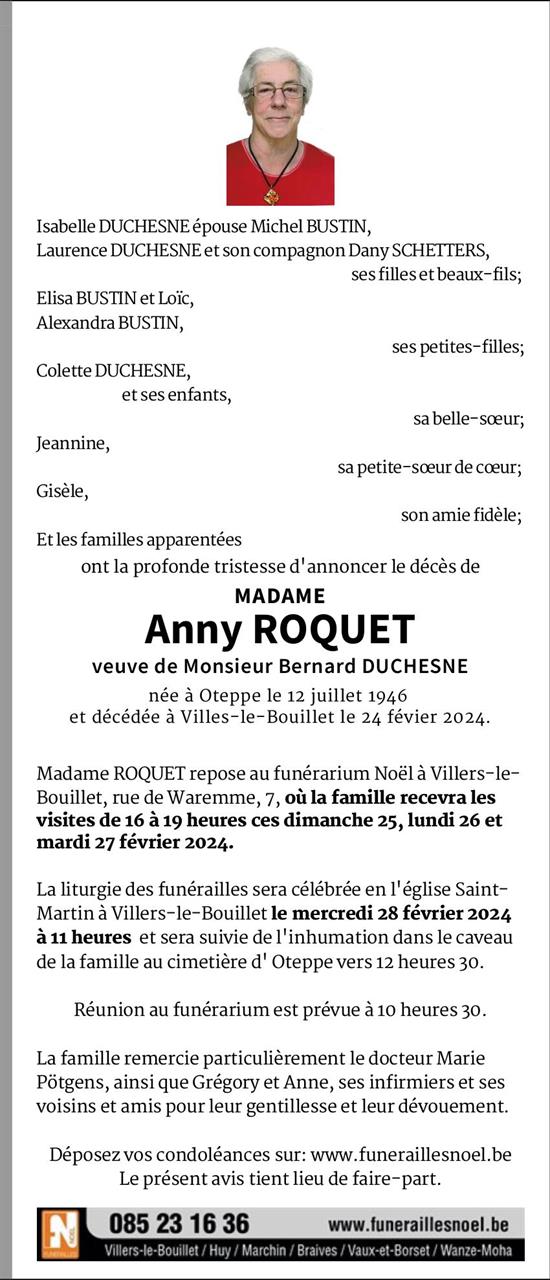 Décédée à Villers-le-Bouillet (4530) le samedi 24 février 2024 à l'âge de 77 ans