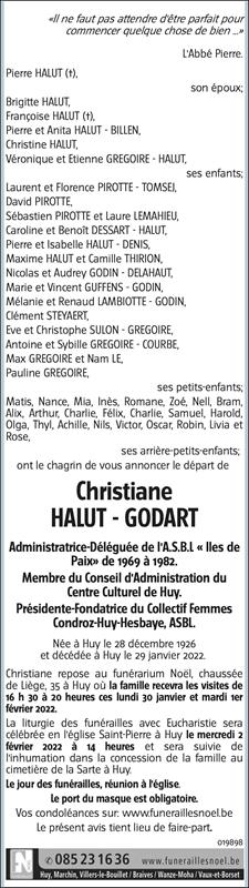 Madame Christiane HALUT née GODART