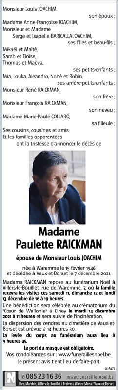 Décédée à Vaux-et-Borset (4530) le mardi 7 décembre 2021 à l'âge de 75 ans