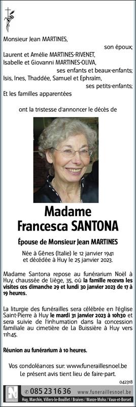 Décédée à Huy (4500) le mercredi 25 janvier 2023 à l'âge de 82 ans