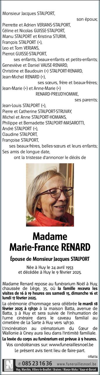 Décédée à Huy (4500) le dimanche 9 février 2025 à l'âge de 71 ans
