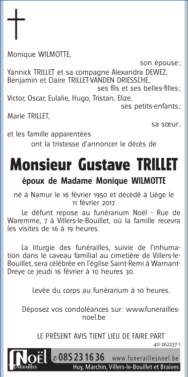 Décédé à Liège (4000) le samedi 11 février 2017 à l'âge de 66 ans