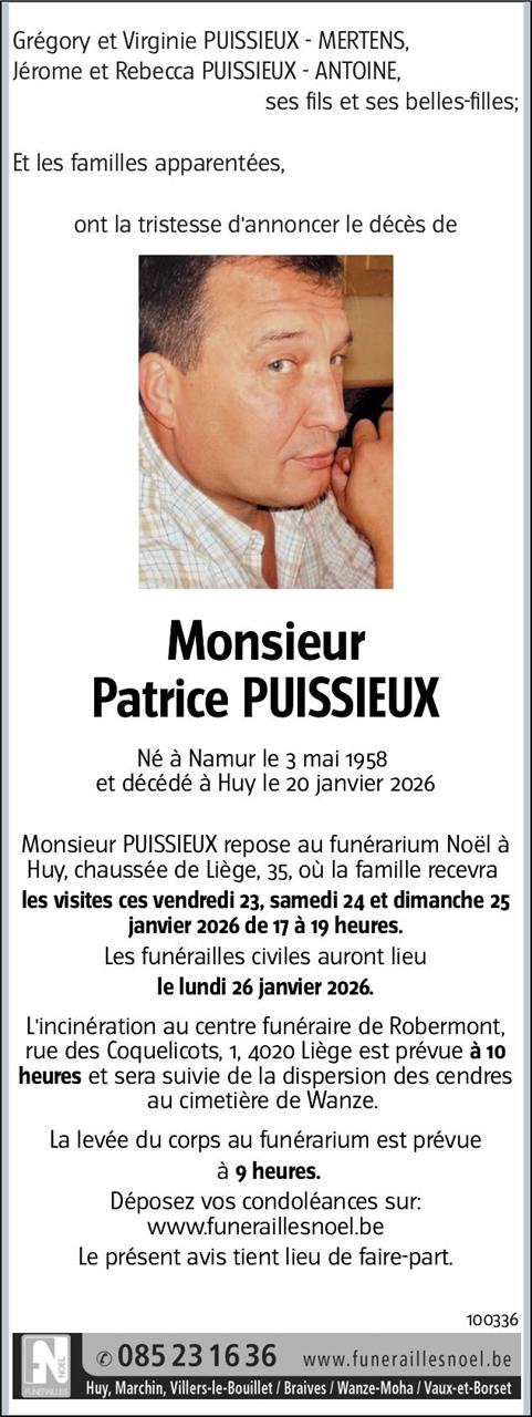 Décédé à Huy (4500) le mardi 20 janvier 2026 à l'âge de 67 ans
