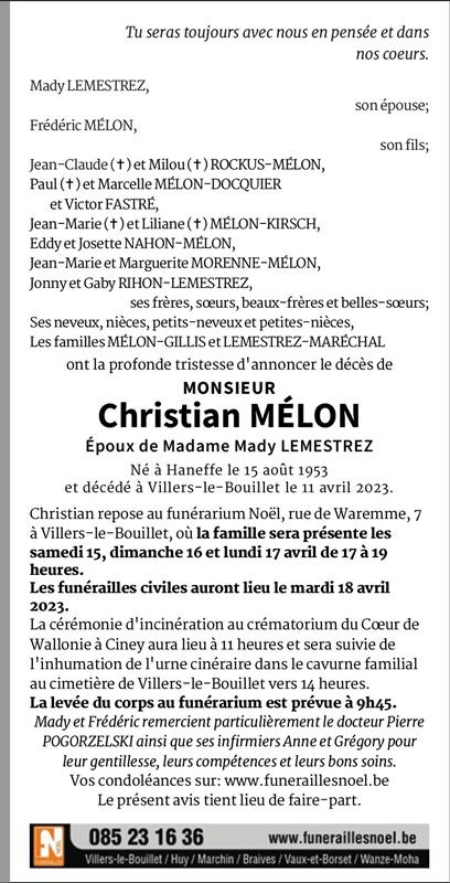 Décédé à Villers-le-Bouillet (4530) le mardi 11 avril 2023 à l'âge de 69 ans