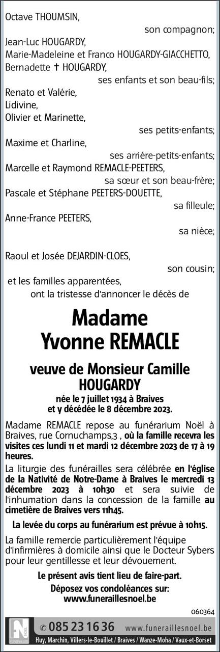 Décédée à Braives (4260) le vendredi 8 décembre 2023 à l'âge de 89 ans