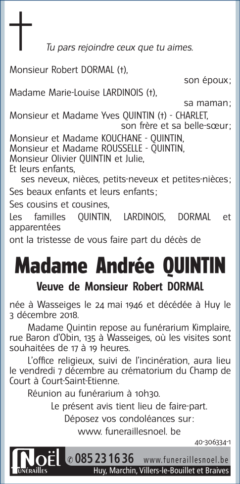 Décédé à Huy (4500) le lundi 3 décembre 2018 à l'âge de 72 ans