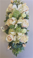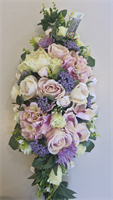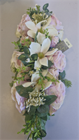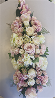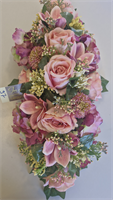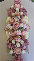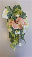 Montage long roses et orchidées pastel